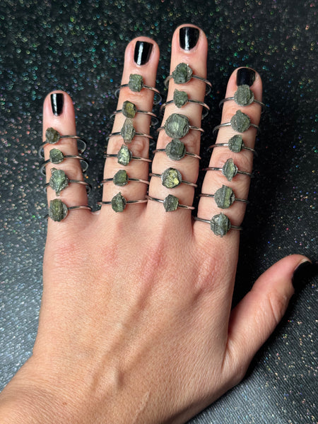 ✨Moldavite & pyrite dust rings✨